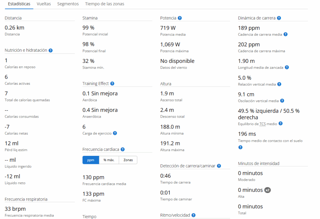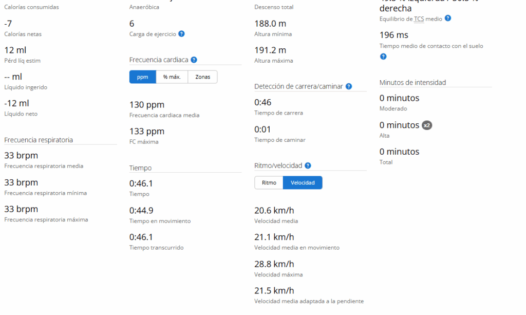 На этих изображениях я оставляю вам пример упражнений высокой интенсивности с моими данными.